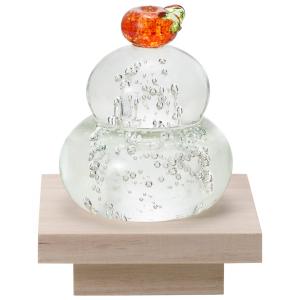 アデリア 置物 オーナメント 粋工房xアデリア 福重ね鏡餅 橙 [ガラス/鏡餅/木台付/ハンドメイド] 日本製 化粧箱入 正月 正月飾り F-4714