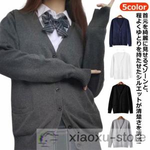 カーディガン スクール Vネック 綿100% 学生 男女兼用 無地 中厚 XS S M L XL 黒 紺 グレー ベージュ ニット コットン セーター 長袖 高校生 中学生 爆買