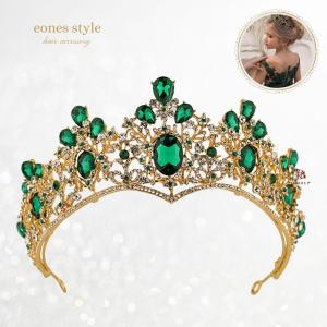 ヘアアクセサリー ジャスミン クリスマス ティアラ ヘッドドレス 手作り 髪飾り フォーマル小物 ラインストーン エメラルドグリーン ゴールド 花モチーフ アラ