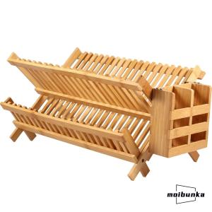 乾燥ラック 箸立て付き 水切りラック 竹 2段 折りたたみ式 コンパクト 抗菌 大容量 横置き ディッシュスタンド ディッシュラック