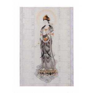 掛軸 巡拝御宝印譜 西国三十三ヶ所 墨観音横向 本紙絹本 集印軸