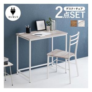 萩原 ハギハラ デスクチェアセット 組立式 2口コンセント付 デスク幅80×奥行45×高さ72cm ホワイト LDC-4697-WH(2609251)
