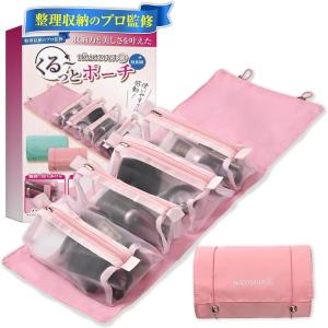 整理収納のプロ監修 メイクポーチ トラベルポーチ 国内検査済 化粧ポーチ 大容量 4仕切りポーチが1つにコンパクト収納 防水(ピンク)