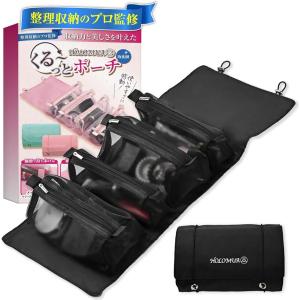 整理収納のプロ監修 メイクポーチ トラベルポーチ 国内検査済 化粧ポーチ 大容量 4仕切りポーチが1つにコンパクト収納 防水(ブラック)