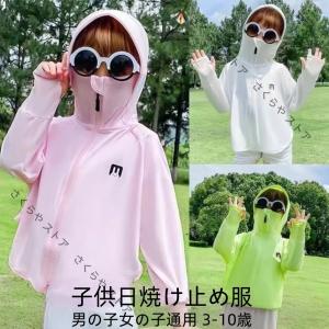 子供日よけ服 ウサギ模様 日焼け止め服 夏 紫外線UVカット 通気性 薄い 冷やす服 男の子女の子通用 3-10歳