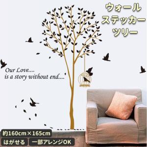 かがみ シール 貼る はがせる ツリー 木 北欧 鳥 鳥かご 鳥籠