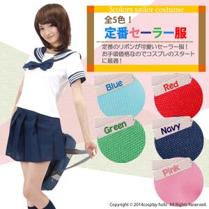 【コスプレホリック】セーラー服 コスプレ 半袖 ミニスカート リボン 6色 5サイズ 制服 JK 女子高校生 ハロウィン 仮装 文化祭 女性 大きいサイズ