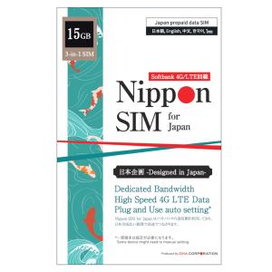 プリペイドsim 日本 simカード 15GB ソフトバンク softbank 4G/LTE回線 3in1(標準/Micro/nano切替) データ通信専用 テザリング可 simフリー端末のみ対応