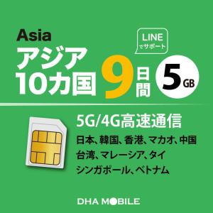 アジア SIMカード 10か国 9日間 5GB プリペイドSIM 日本+アジア9か国 4G/LTE回線 データ通信専用 simフリー端末のみ対応