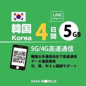 【メール送付】韓国 eSIM 4日間 5GB(超えると低速128kbps) プリペイドsim 4G/LTE回線 データ通信専用 esim対応simフリー端末のみ対応