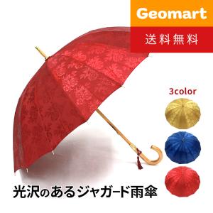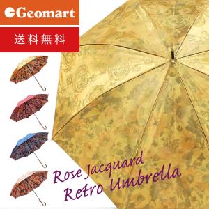 レディース 薔薇柄 光沢感のあるジャガード雨傘 親骨 55cm 16本骨 傘 花柄 手開き レトロ 70年代 80年代 手元にこだわったデザイン 送料無料