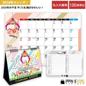 カレンダー 2026 名入れ 卓上 社名 午 ウマ ノベルティ 粗品 かわいい 「干支 卓上カレンダー 100冊」
