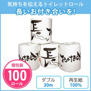 トイレットペーパー ご挨拶 販促 個包装 業務用 日用品 景品 粗品 ダブル 「長いお付き合いを! 100個」