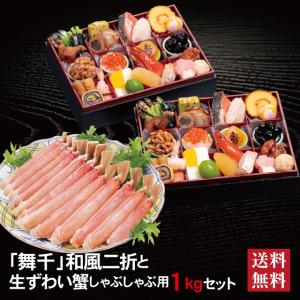 おせち 2026 生ずわい蟹 セット 「舞千」 冷蔵 長方形 二折 全26品 2人前 「生ずわい蟹」 冷凍 しゃぶしゃぶ用1kg 送料無料 千賀屋