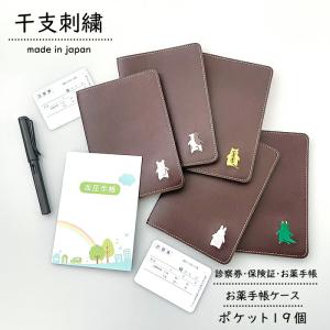 お薬手帳 ケース 大容量 干支刺繍 ダークブラウン ポケット19個 診察券 ホルダー 保険証 A6 手帳カバー 手帳入れ 誕生日 診察券 通院 母の日 父の日 敬老の日