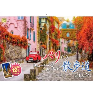 写真工房カレンダー | パリの散歩道 2026 カレンダー 壁掛け 風景 【紙ホルダー付 300×400】スマホ壁紙12枚付 YC-08