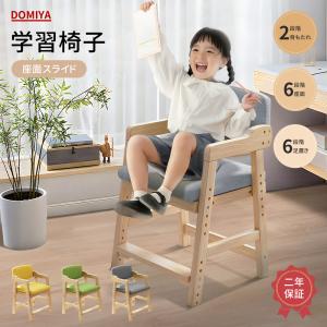 DOMIYA 学習チェア キッズチェア 木製 ハイチェア 子供 学習椅子 高さ調整 子供椅子 勉強 学習 ダイニング 椅子 子ども クッション付き 背もたれ 二年保証